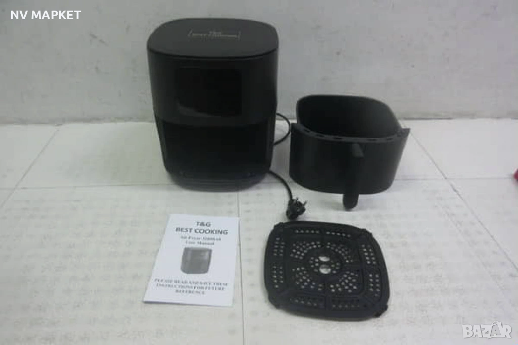 Комплектът съдържа: уред, кошница, перфорирана подложка, инструкция на английски „T&G BEST COOKING – Air Fryer Manual“;