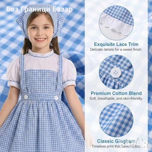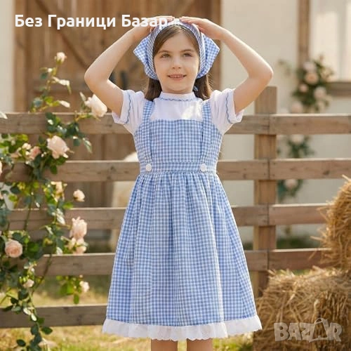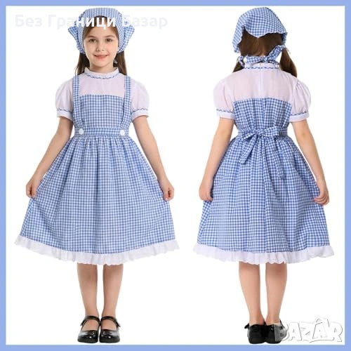 Нова детска Момичешка синя карирана рокля костюм за Хелоуин косплей
