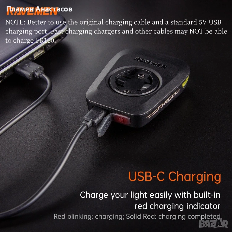 RAVEMEN FR160 е практичен аксесоар за всеки велосипедист, който използва Garmin велокомпютър и иска компактна и ефективна светлина за по-добра видимост и безопасност на пътя.