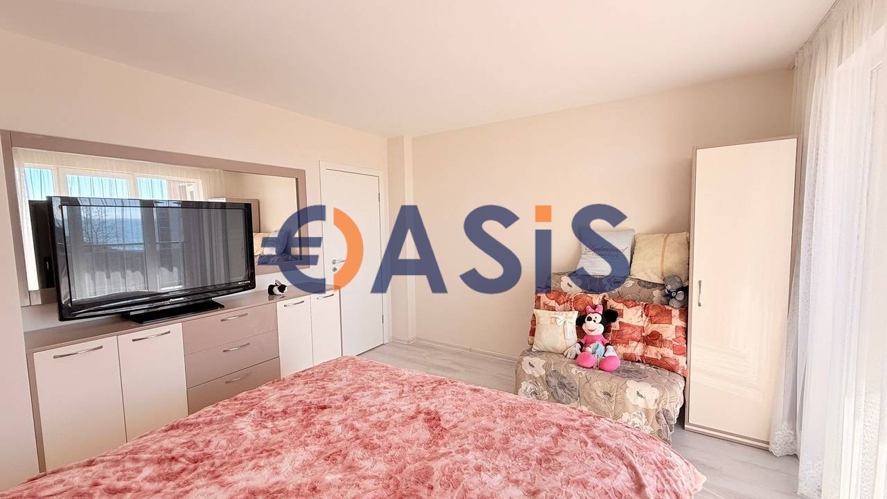 Апартамент на 4-ти етаж с площ 165-170 метра ( направен от два апартамента) + килер 4 метра в мазето, изглед към морето, две спални, две бани, кухня-хол, един голям балкон! Ремонт, нови мебели и уреди! Акт 16, партидите са на вода и ток, комплексът разполага с етажна собственост, има басейн, билярд, детска площадка и детска стая, барбекю и беседка за отдих, през лятото топла вода от слънчеви панели, а през есента и зимата от бойлер! До морето 50-70 метра, 14-16 апартамента живеят целогодишно! Такса поддръжка 8 евро на метър.