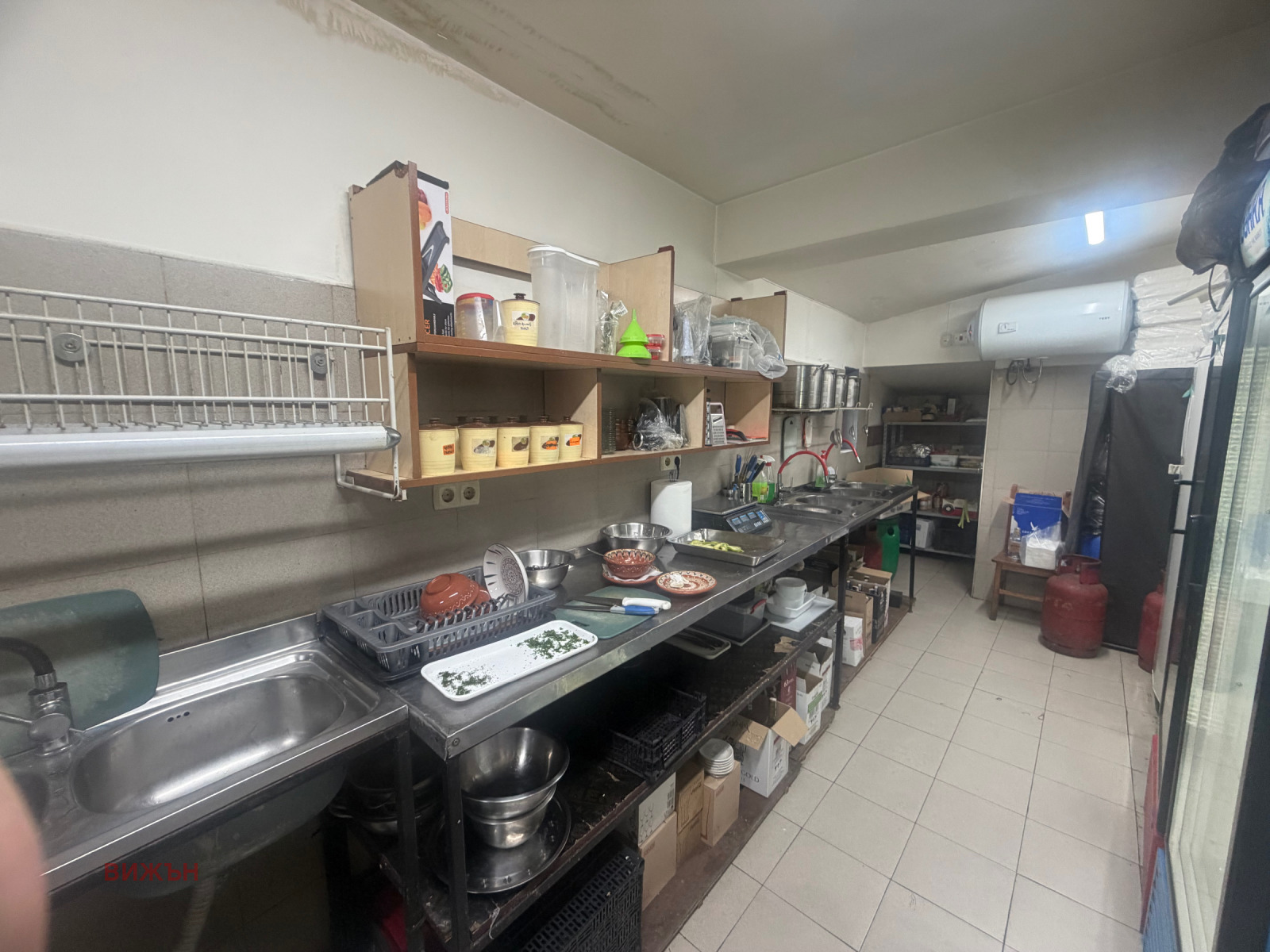 Агенция Вижън ви предлага под наем търговско помещение със статут на ресторант с площ от 120 кв.м в гр. Перник, разширен център. Разпределение: зона за хранене, тоалетна и кухня. Кухненското оборудване от снимките и част от масите са на старият наемател и вече ги няма в имота.
