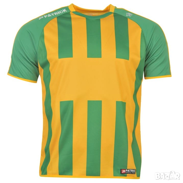 Оригинален футболен комплект Patrick Green/YellowS. Материя 100% полиестер. Тениска - дължина 67, ширина гърди 54; къси гащи - дължина 43, дължина от чатала 13.5 см., талия 31 см. Късите гащи няматбандаж. Внос от Англия.