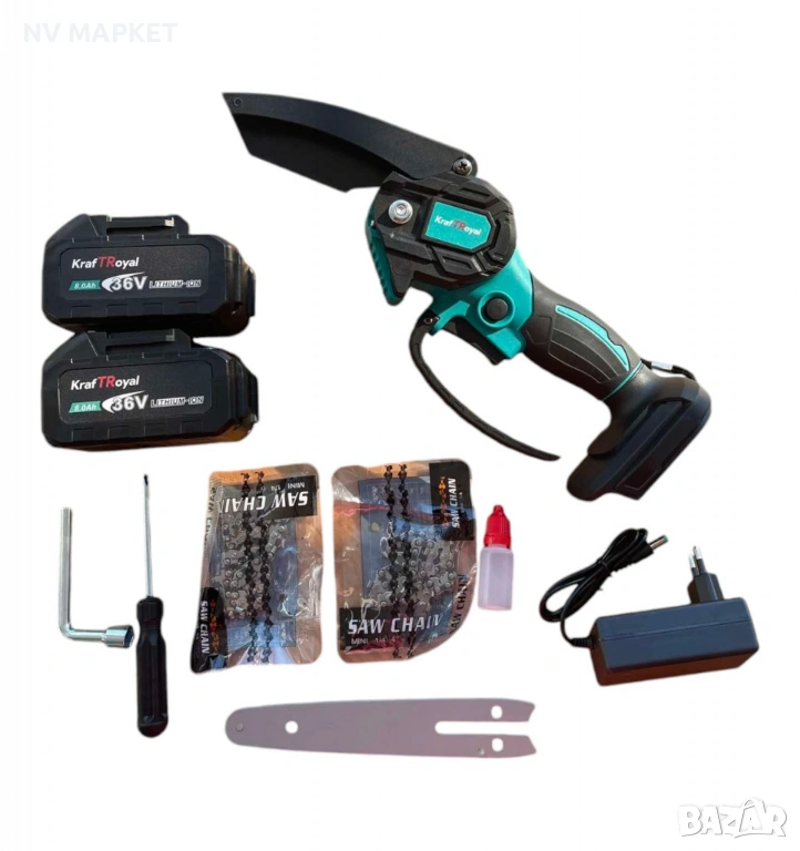 Aкумулаторен трион ,резачка с 2 шини и 2 броя 36V 8AH батерии