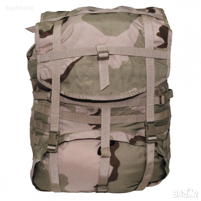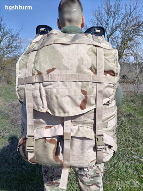 Продавам легендарната американска военна раница MOLLE II "Large Rucksack" в камуфлаж 3-Color Desert. Това е оригинален продукт от американския военен резерв (U.S. Army Surplus), отличаващ се с безкомпромисно качество и здравина, недостижими за гражданските копия.