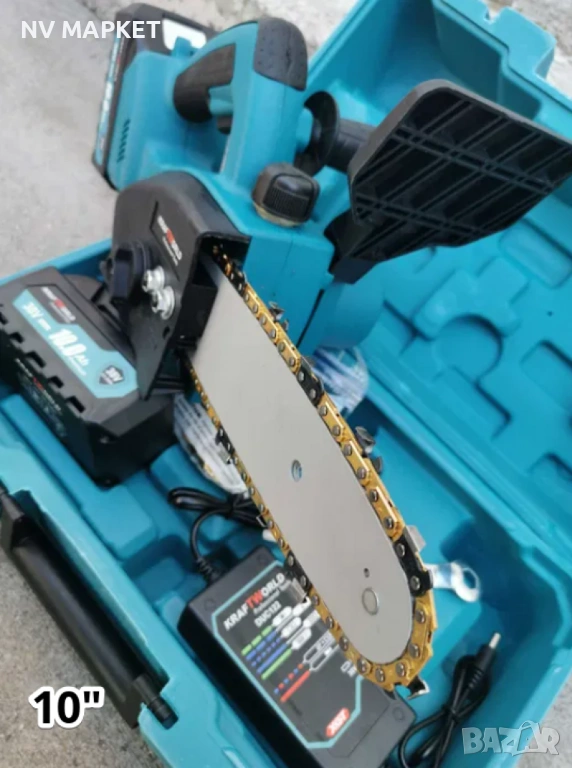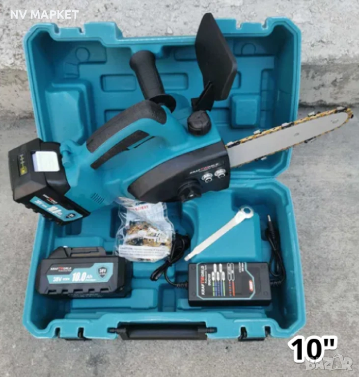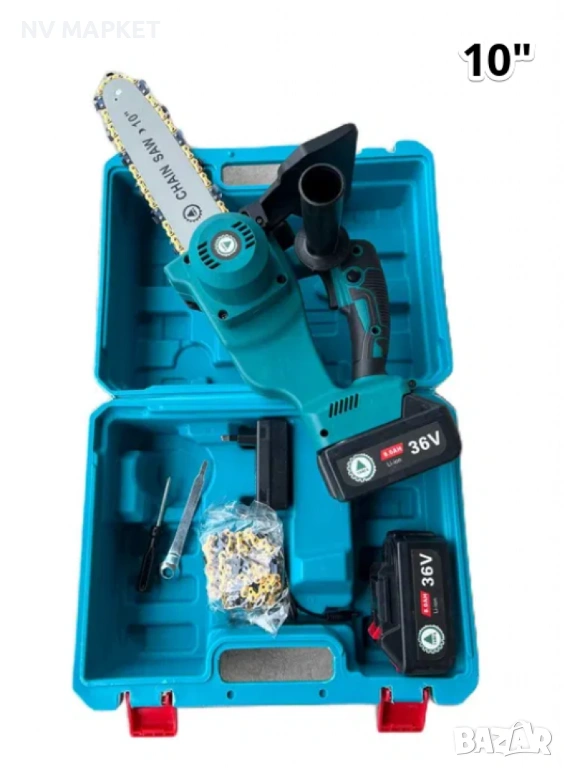 Акумулаторна резачка за дърва с маслен филтър,2х36V 10Ah,с акумулаторен верижен трион с двойна батер