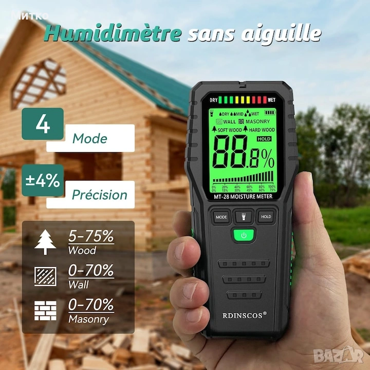 Дигитален влагомер MT28, за дървени строителни материали, комплект.