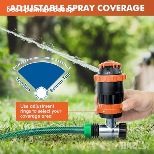 Регулируем ъгъл на поливане от 25° до 360° за прецизно покритие