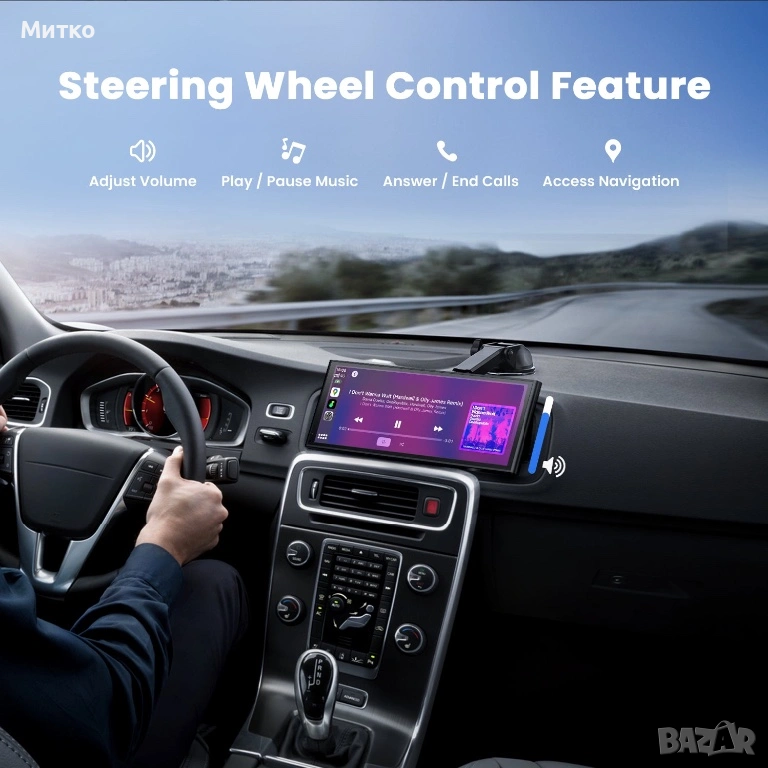 Включи и работи и работи с почти всяко превозно средство: Инсталирайте автомобилния плейър само за 3 минути, без да сваляте оригиналното радио; Лесно се монтира на таблото с лепящата скоба или на предното стъкло с вендузата; Не е необходимо сложно окабеляване - просто го включете в гнездото за запалка (12-32V); Подходящ за всички видове превозни средства, включително автомобили, камиони, кемпери, SUV-ове, пикапи и стари автомобили без смарт екрани.