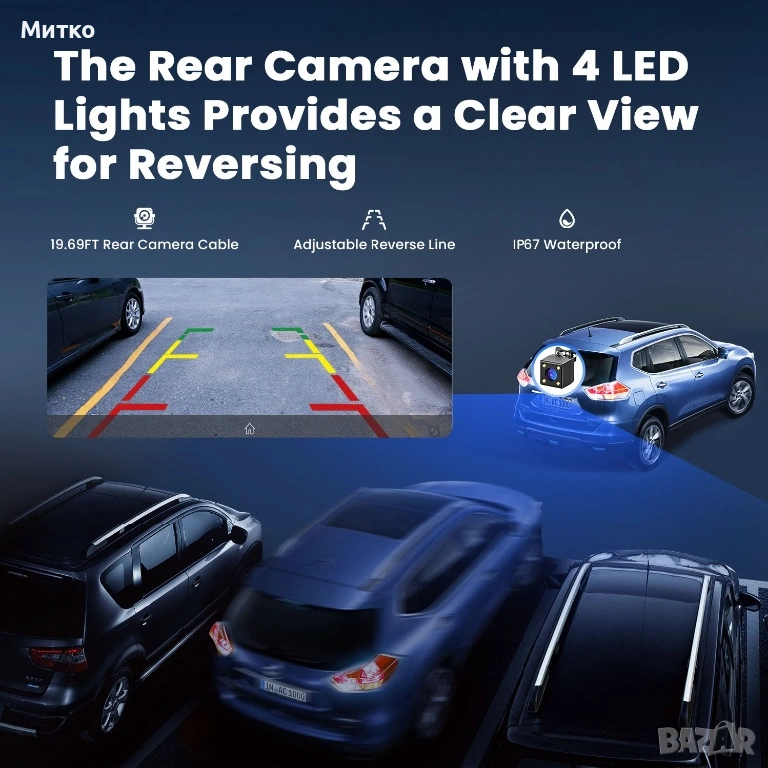Задна камера с 19,7-футов кабел и