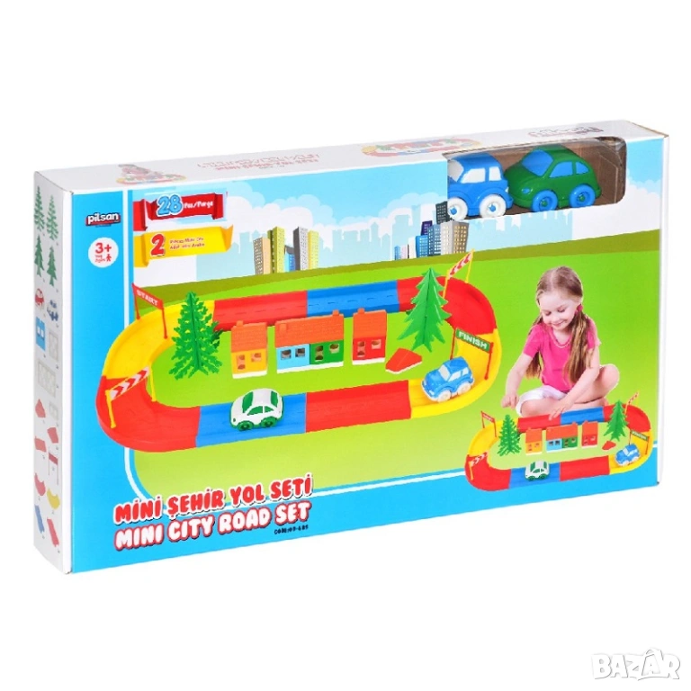 Забавен конструктор писта Mini City Road, с който децата могат да изградят собствен град и да организират състезания с количките.Комплектът съдържа 28 части и 2 колички, изработени от висококачествена нетоксична пластмаса.