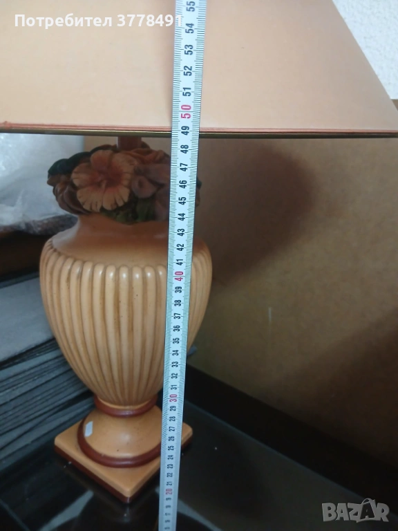 Красива старинна настолна лампа с декоративен цветен абажур. Изработена от дърво и керамика, с класически дизайн, подходяща за домашен интериор. Лампата е в добро състояние и готова за употреба.