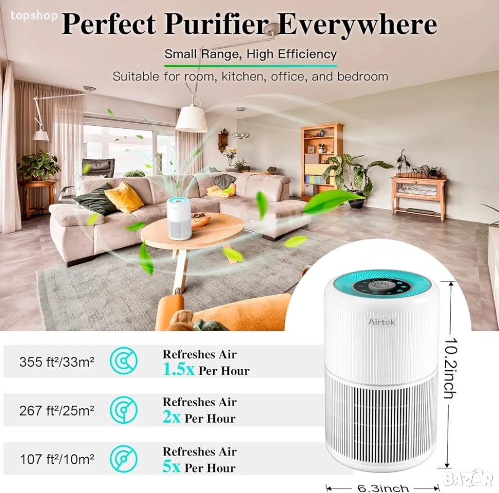 Продавам висококачествен пречиствател за въздух AIRTOK, идеален за спалня, детска стая или офис. Уредът използва 4 степенна система за филтрация, която премахва 99.97 процента от замърсителите във въздуха.