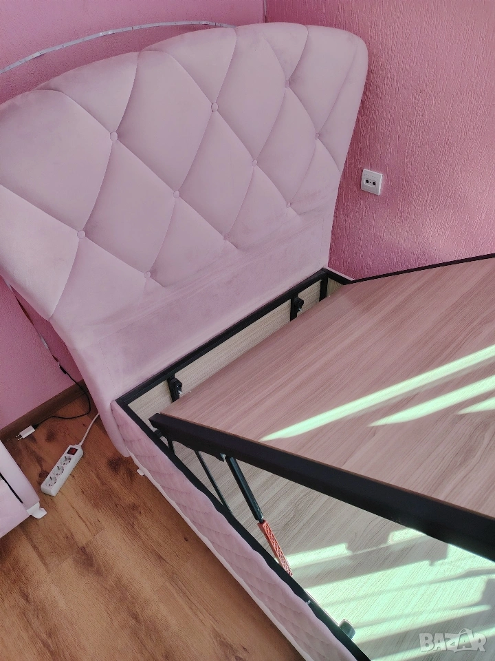 Тапицирана основа за легло «Pinky» с място за съхранение, повдигащ механизъм, система за безшумно затваряне, размер 100/200