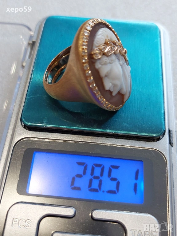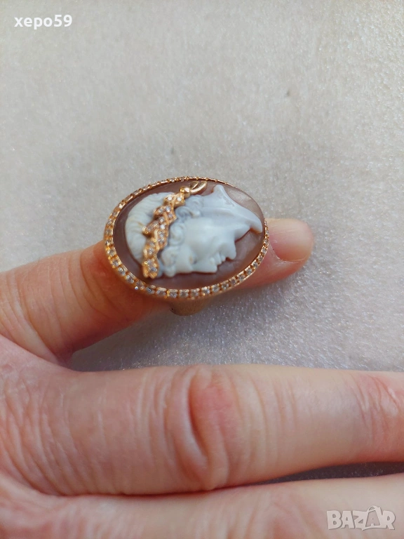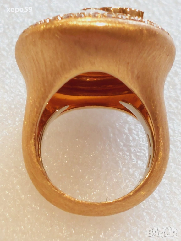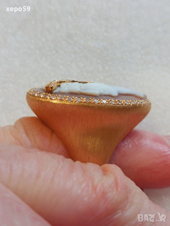 Уникален дамски златен пръстен,злато 18 карата,45 брилянта,и огромна камея → Обява 53840580