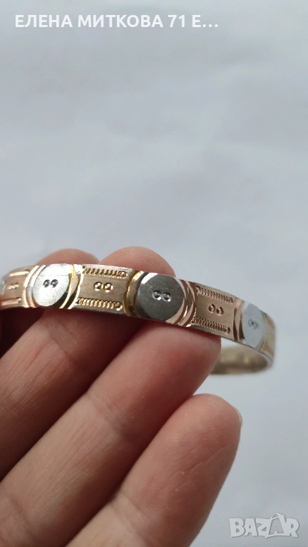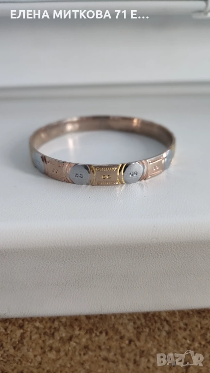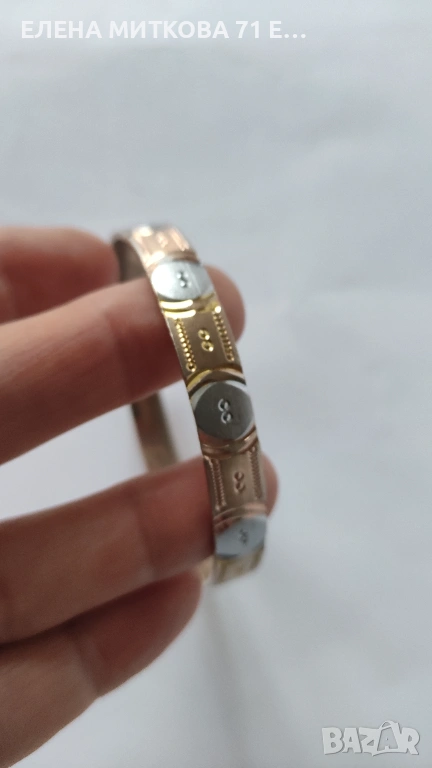 Красива гравирана гривна от метал в три цвята.Вътрешен диаметър 6 см