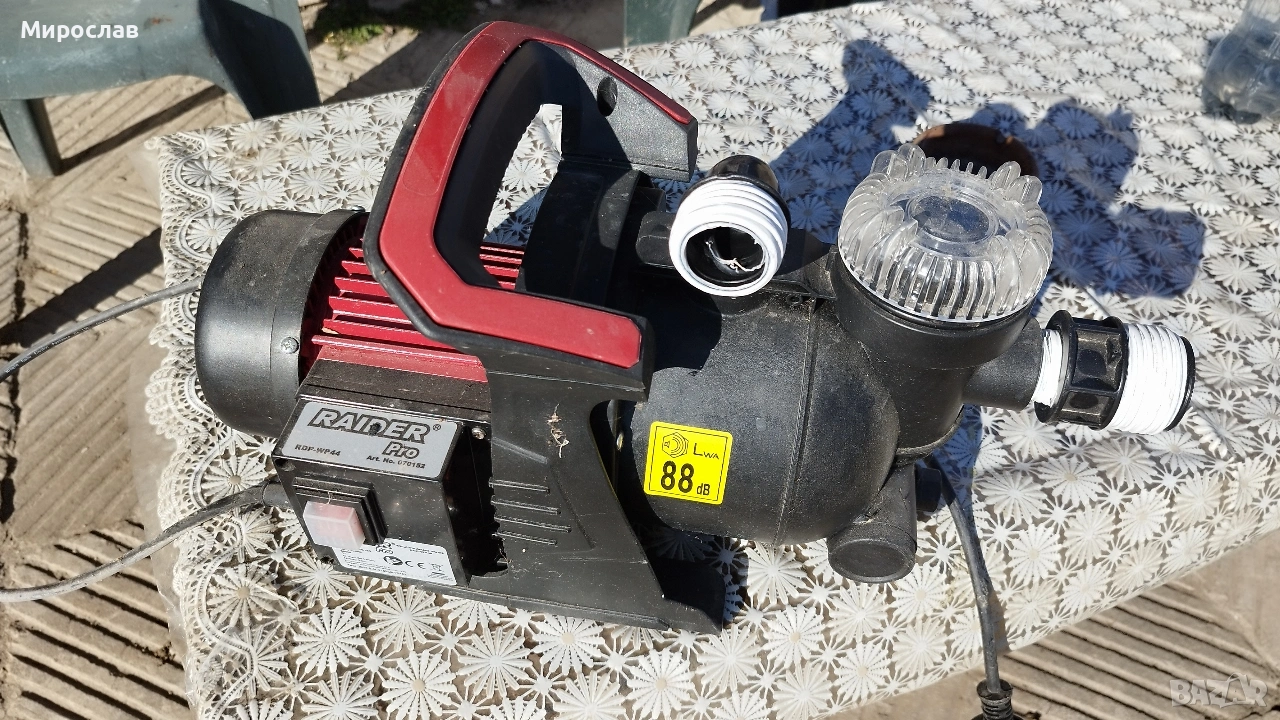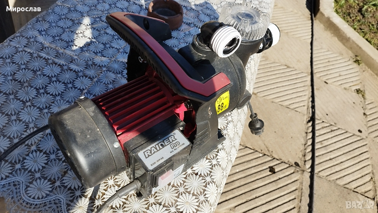 Продавам помпа за вода Raider и още една от ГЕРМАНИЯ Raider помпата е нова не е ползвана седи вече една година в мазата купих я за кладенеца, но кладенеца е бил 11 метра дълбок, а помпата засмуква максимум на 8метра дълбочина. Само я бяхме пригодила за работа, но се оказа че не ни върши работа, а другата помпа е купувана от Германия преди година и ползвана успешно помпата изпомпва доста бързо с доста налягане. Вече купихме хидрофор и не ми са нужни.