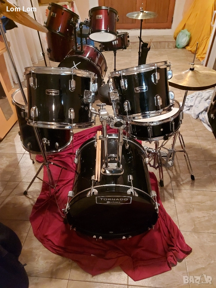 продавам комплект акустични барабани Tornado Mapex,много малко използвани с ново столче.