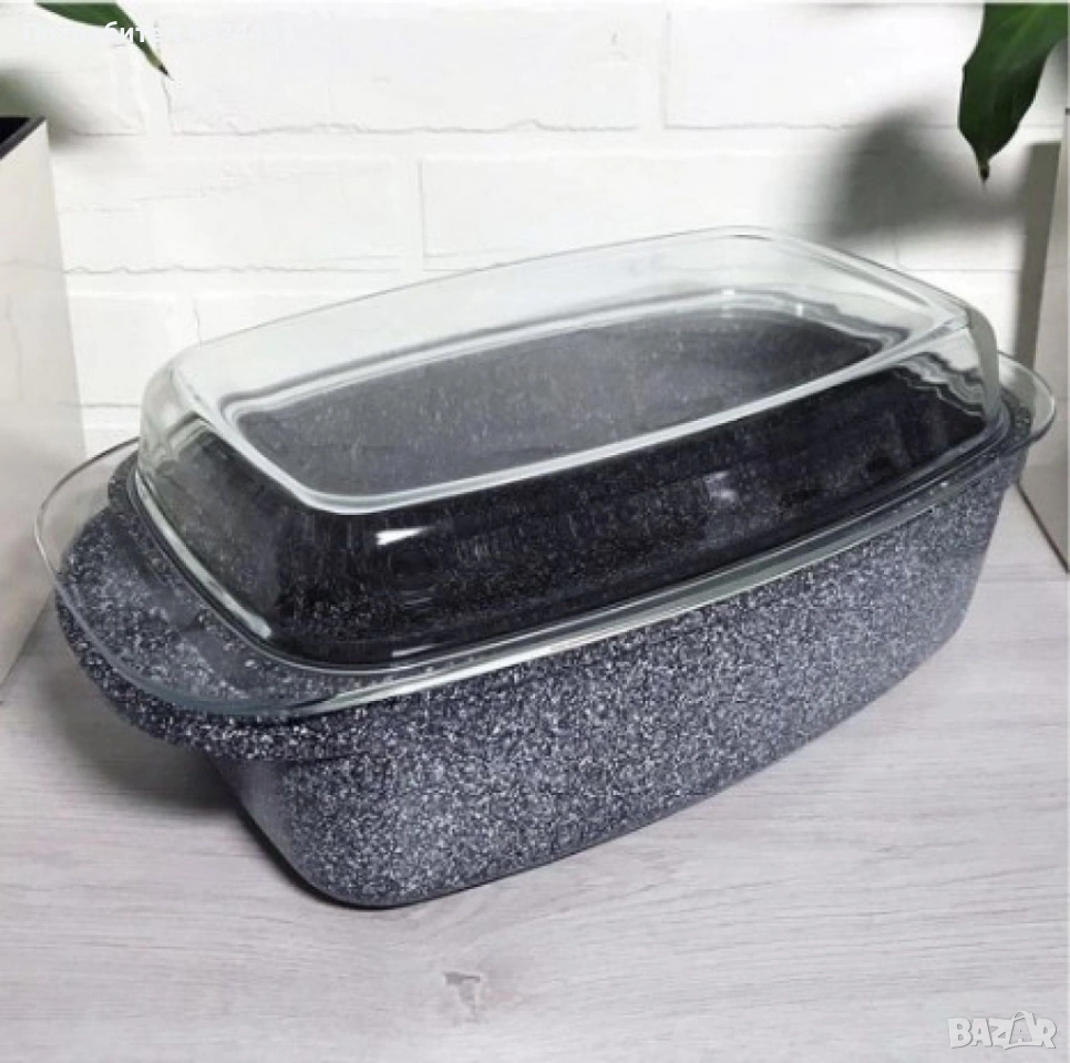 Правоъгълен съд за готвене с мраморно покритие