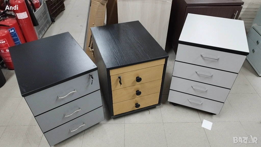 Продавам Офис шкафове с три или четири чекмеджета на колела и - контейнер за бюро със и без заключване. Цената е за 1 брой.
