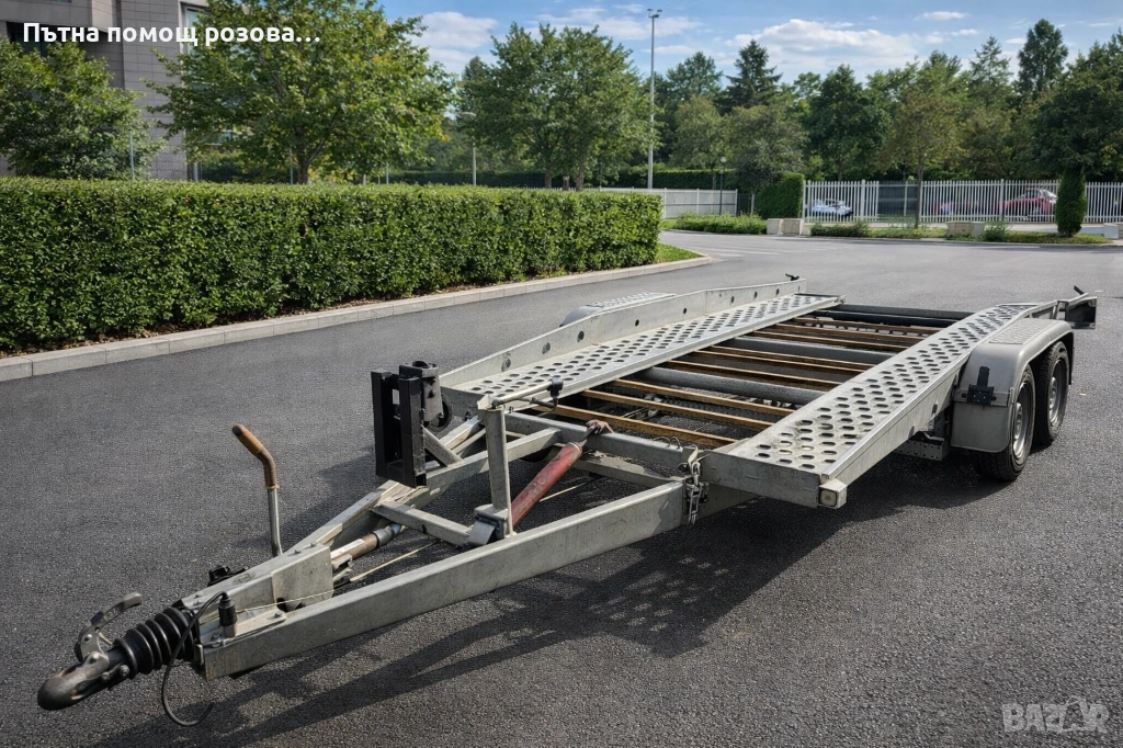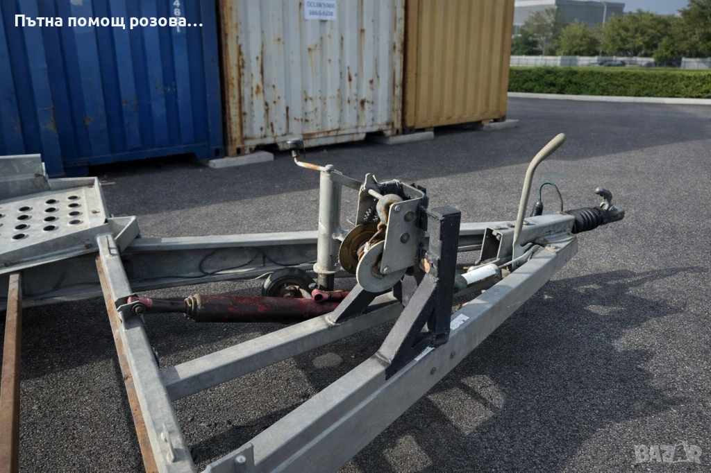 Платформата е оборудвана с хидравлично повдигане, ръчна лебедка и 4 броя колани за укрепване на автомобила или товара. Разполага с всички необходими документи за движение на територията на България, както и валидна застраховка и винетка.