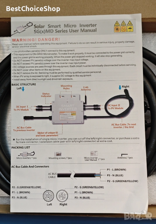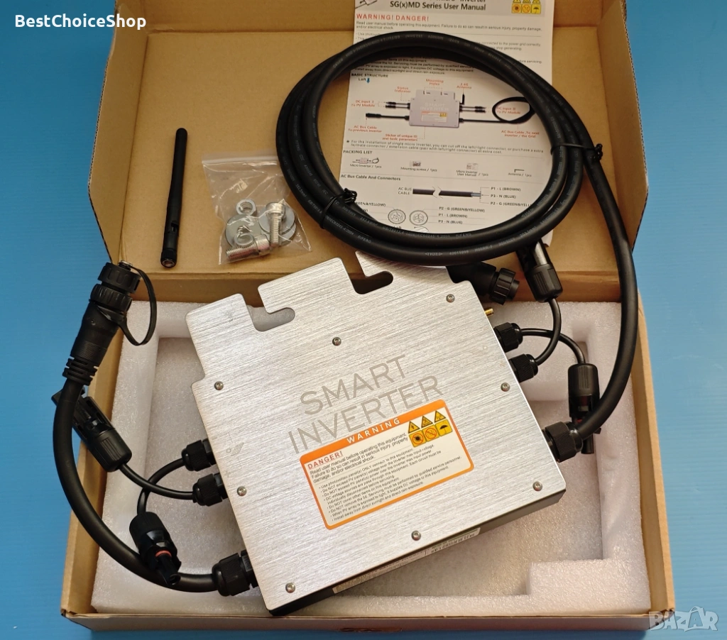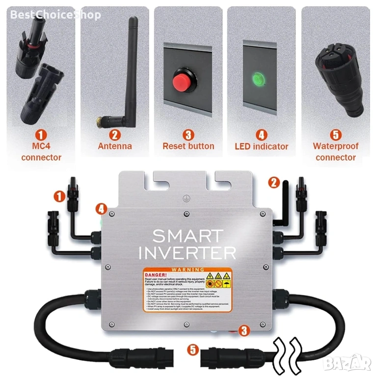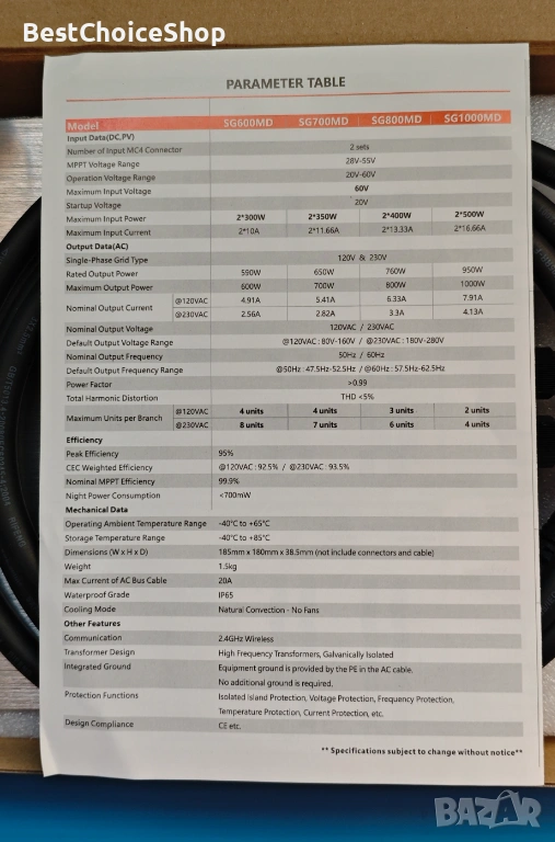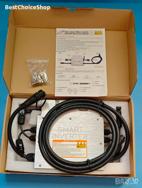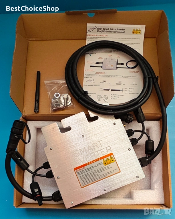- Микроинвертор от втора генерация: микроинверторът SG от втора генерация има функция за комуникация чрез електронен мобилен телефон, която ви позволява да следите работното състояние на инвертора по всяко време и навсякъде. Тази интелигентна, свързана към мрежата система подобрява безопасността.