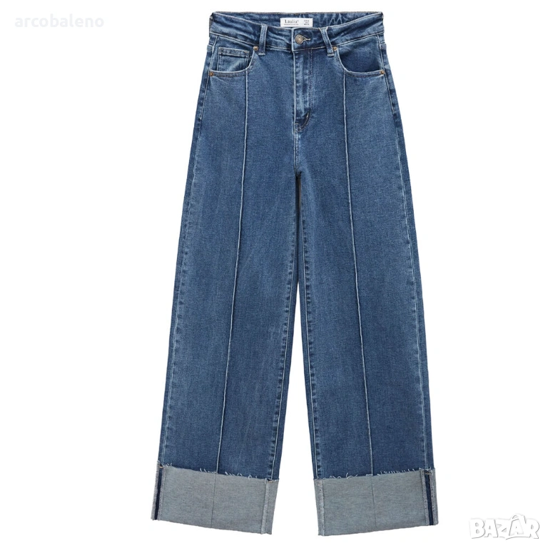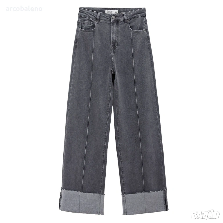 Открийте перфектната комбинация от стил и комфорт с тези модерни дънки, които ще добавят свеж щрих към гардероба ви! С уникален дизайн с изчистени линии и привличащи вниманието детайли, тези дънки са задължителни за жените, които следят модата. Изработени от висококачествен деним, те предлагат не само издръжливост, но и комфорт през целия ден. Широките крачоли създават непринуден силует, а изисканият подгъв с фините си детайли подобрява визията. Идеални за ежедневно носене и множество развлекателни дейности, тези дънки са перфектни за небрежни събирания с приятели или за спокойни разходки в парка. Универсалната кройка ги прави идеален избор за всеки сезон. Независимо дали ги комбинирате с ежедневна тениска или по-елегантен топ, тази дреха е истински хамелеон във вашия гардероб. Тези дънки са предназначени за жени, които ценят висококачествената изработка и модерния външен вид. Вземете тази незаменима дреха още днес и направете модно изявление!