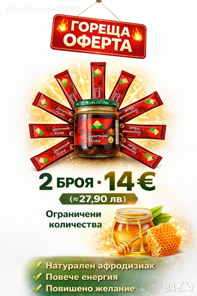 100% натурален афродизиак, който дава повече енергия и повишава желанието.