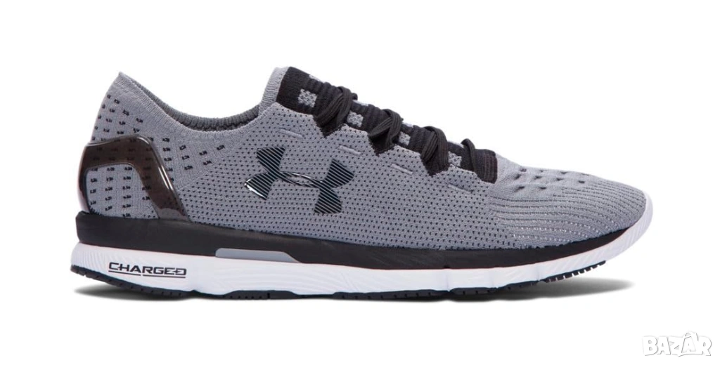 Under Armour Speedform Slingshot: Стилни, но продуктивни маратонки. Използването на иновативна технология UA SpeedForm елиминира разсейването, докато бягате, гарантирайки ви най-доброто бягане всеки път. Горната част е изработена от Dyneema, най-здравото влакно в света, вплетено в горната част за максимална трайна гъвкавост, докато безшевната, асиметрична зонална компресия издърпва краката ви от петата до пръстите по-бързо от всякога. Конструкция с "язък бурито", подобна на чорап, обгръща стъпалото за прецизно прилягане и насочване на стъпалото. Междинната подметка е с двуслоен дизайн, комбиниращ омекотяване върху Micro G пяна за най-добрата комбинация от абсорбираща удара опора и експлозивна реакция. Поддръжката и стабилността се осигуряват от Pebax плоча, поставена между двата слоя на междинната подметка. Анатомичната външна подметка предлага естествено прилягане, а производителността се осигурява от гума, която осигурява подобрено сцепление с по-малко тегло.