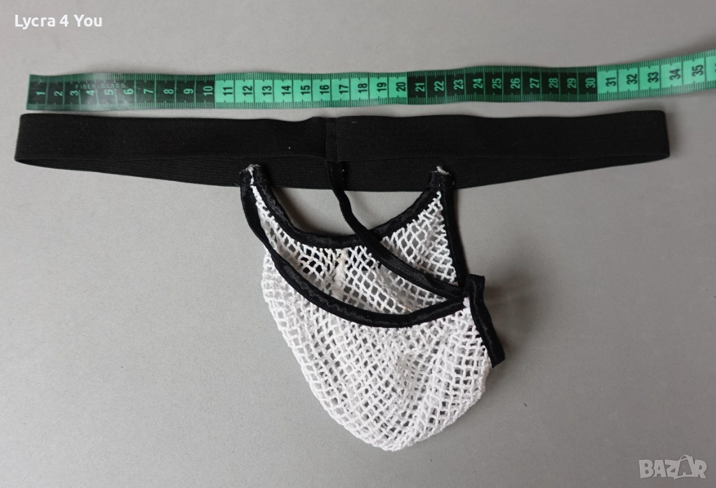 Мъжки мрежести прашки от ситна бяла мрежа. На талията са с ластик, който се разтяга доста от 66см. до 115-120см. максимално разтягане.