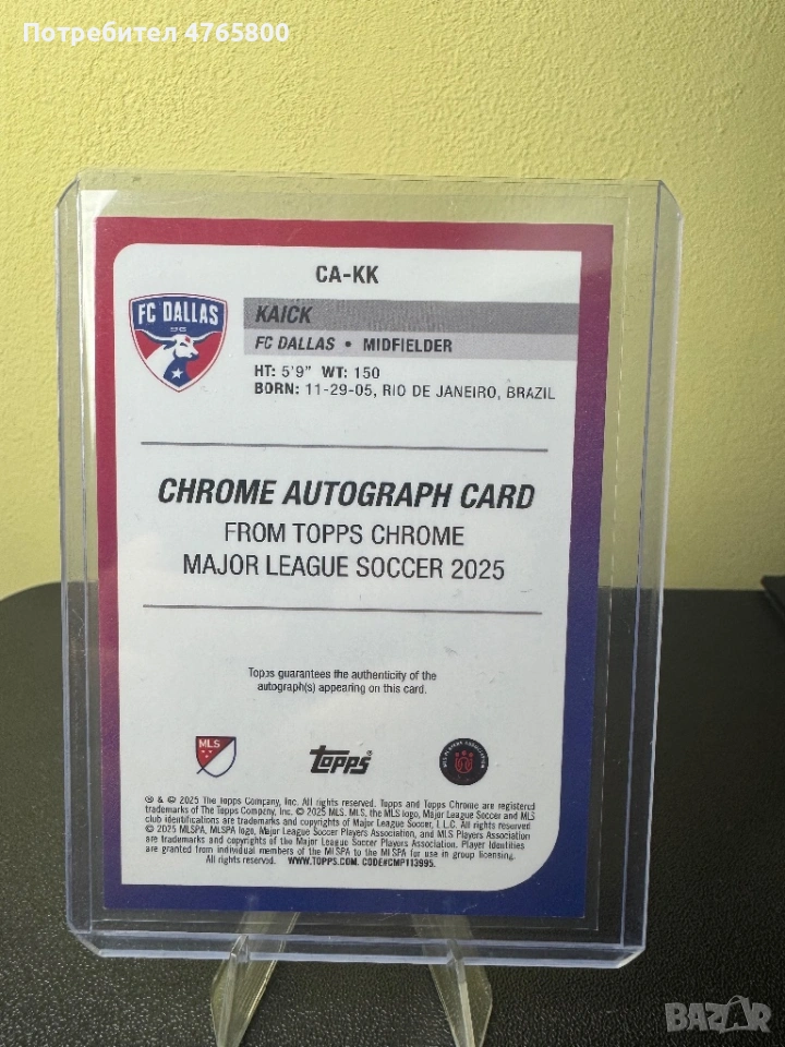 Topps Chrome 2025 Kaick RC Auto /199 – Rookie Autograph FC Dallas, снимка 1 - Колекции - 53841851 Topps Chrome 2025 Kaick RC Auto /199 – Rookie Autograph FC Dallas, снимка 2 - Колекции - 53841851 1/2