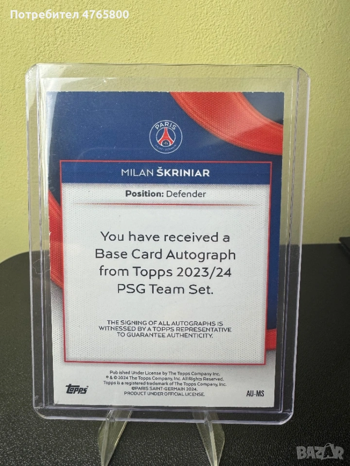 Milan Škriniar Autograph Card – Topps 2023/24 PSG Team Set, снимка 1 - Колекции - 53841865 Milan Škriniar Autograph Card – Topps 2023/24 PSG Team Set, снимка 2 - Колекции - 53841865 1/2