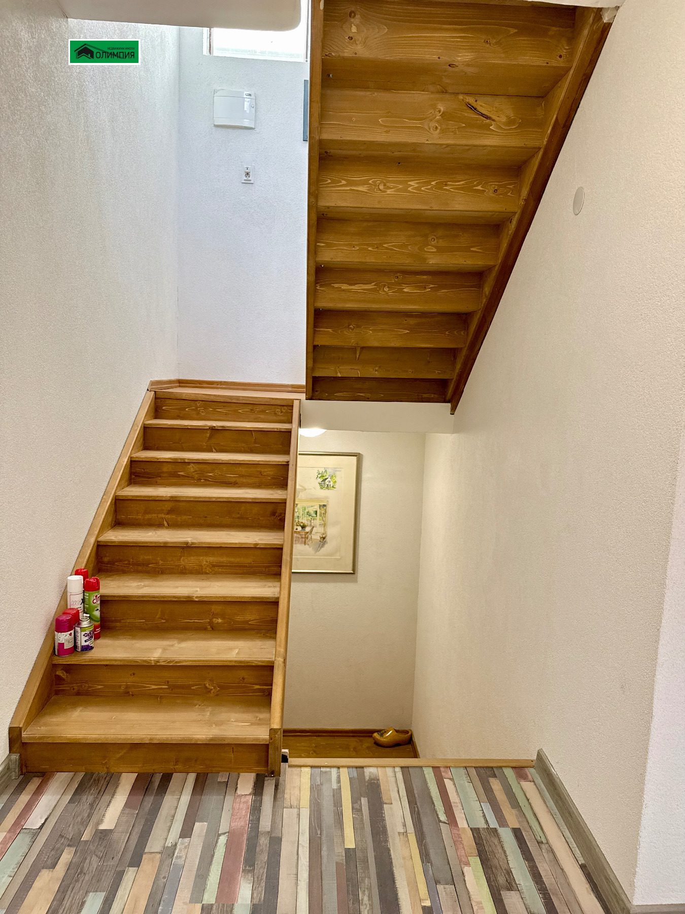 Етажите са свързани с красиви и стабилни дървени стълби, които водят и към таванското пространство - трети малък етаж.