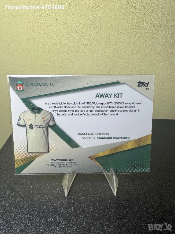 Liverpool FC Away Kit /150 – Topps Team Set Limited Card, снимка 1 - Колекции - 53841907 Liverpool FC Away Kit /150 – Topps Team Set Limited Card, снимка 2 - Колекции - 53841907 1/2