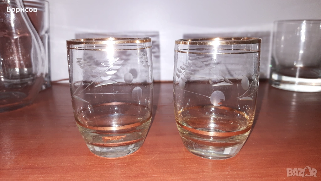 Стари стъклени чаши, златен кант. → Обява 53841910