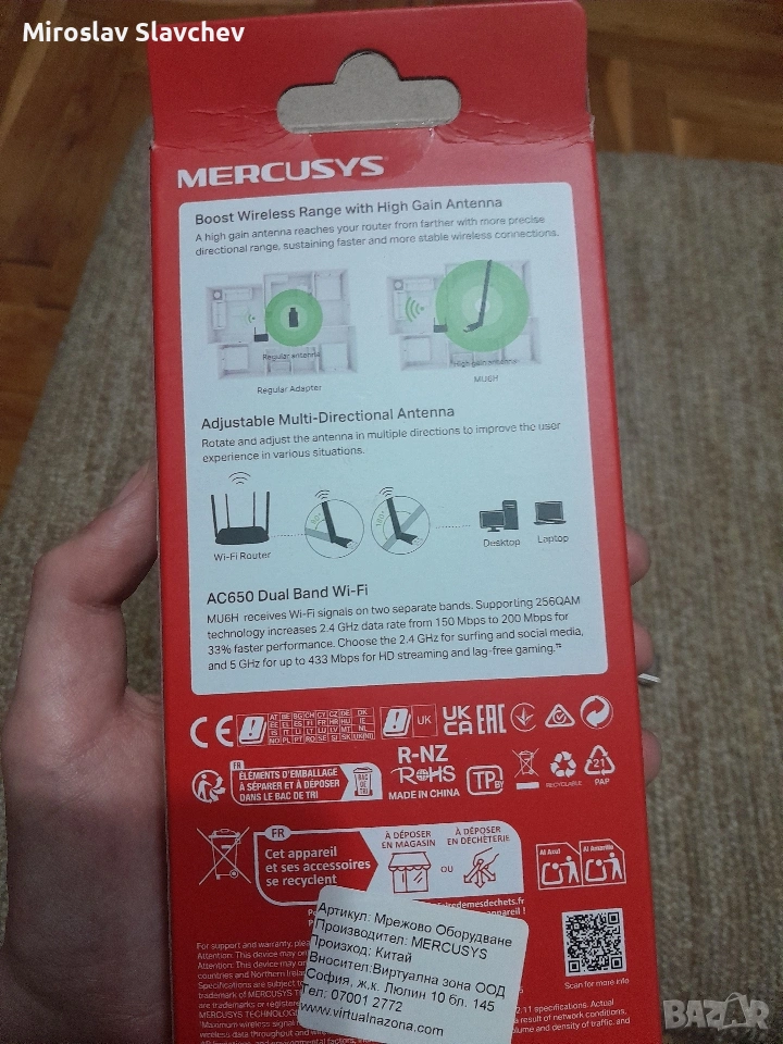 WiFi адаптер Plug and Play за лесно свързване към безжична мрежа. Идеален за по-бързо сърфиране и стриймване на музика и видеа на лаптопа или компютъра ви. Удобен и лесен за използване. Почти не е ползван.