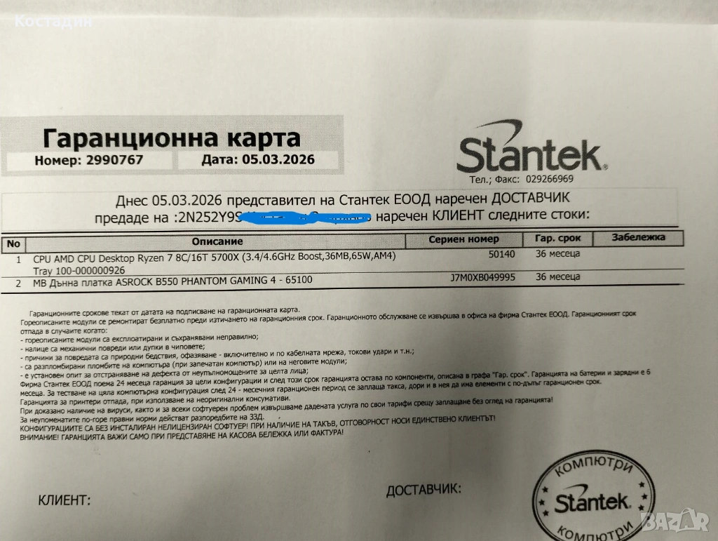Процесор: AMD Ryzen 7 5700х - Гаранция до 05.03.2029г