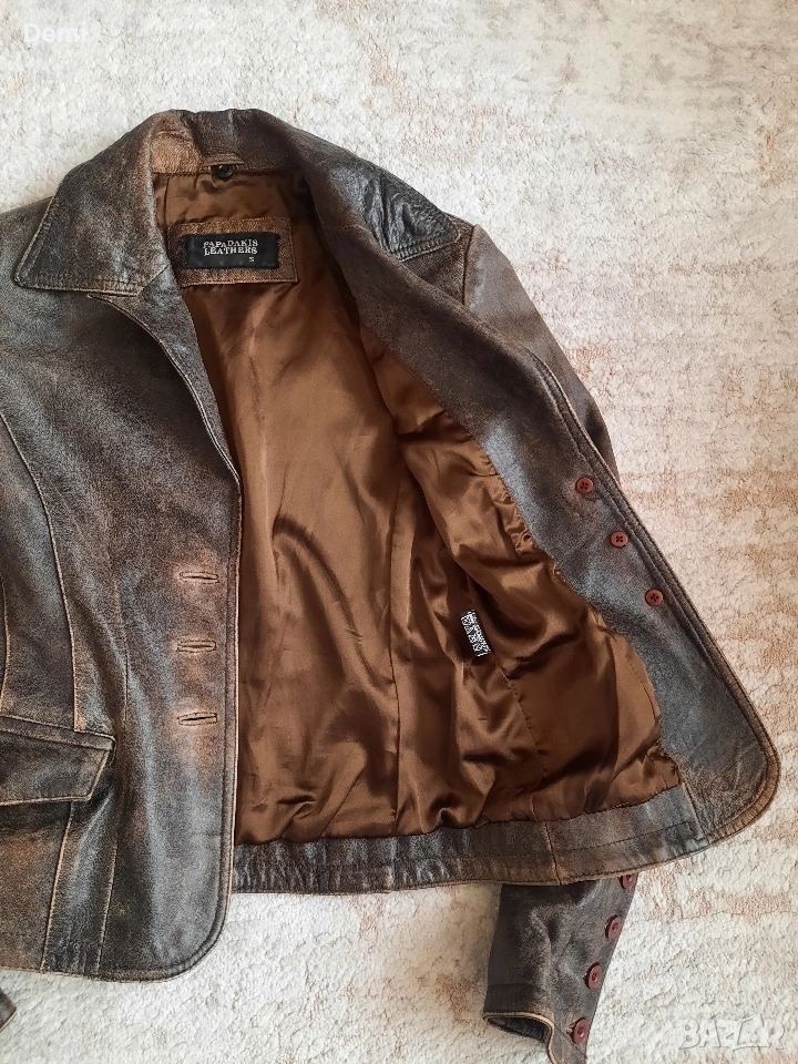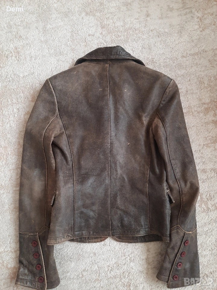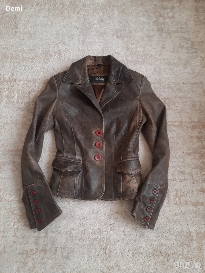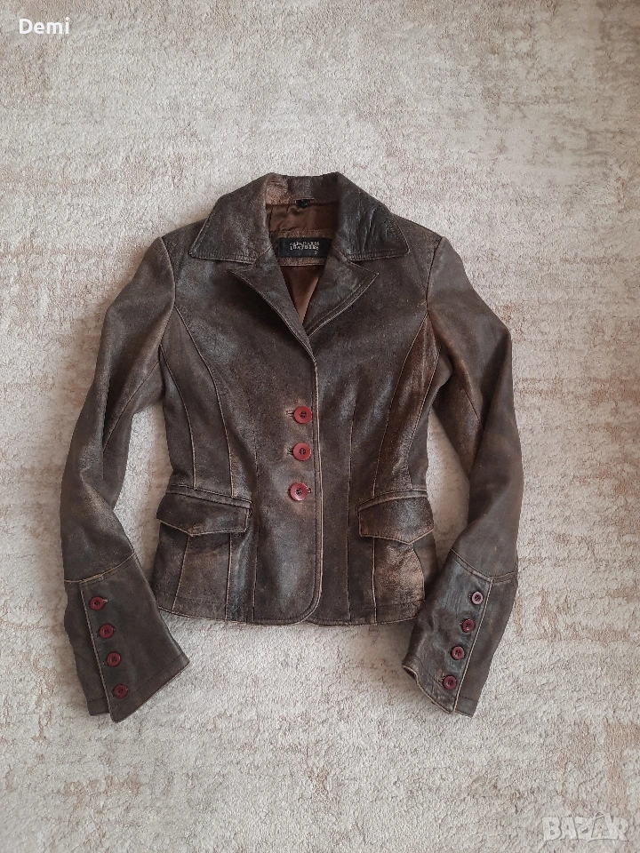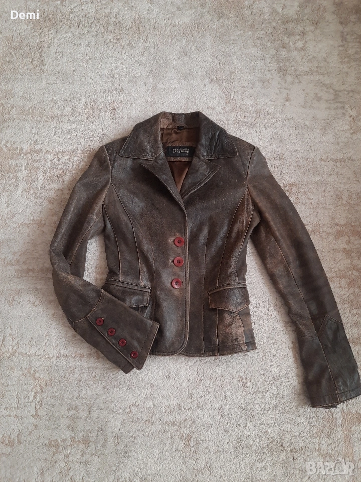 Дамско кафяво кожено яке. Винтидж → Обява 53842802