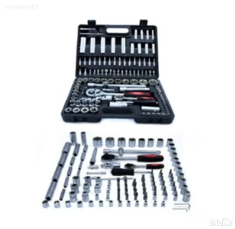 - 17 броя вложки 1/2'' къси: 10мм; 11мм; 12мм; 13мм; 14мм; 15мм; 16мм; 17мм; 18мм; 19мм; 20мм; 21мм; 22мм; 24мм; 27мм; 30мм; 32мм