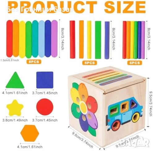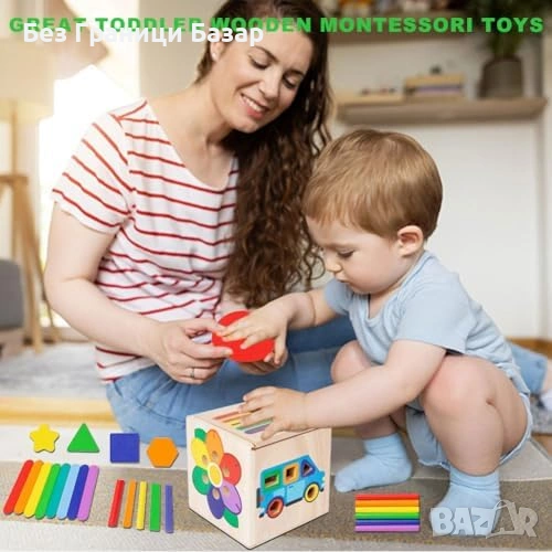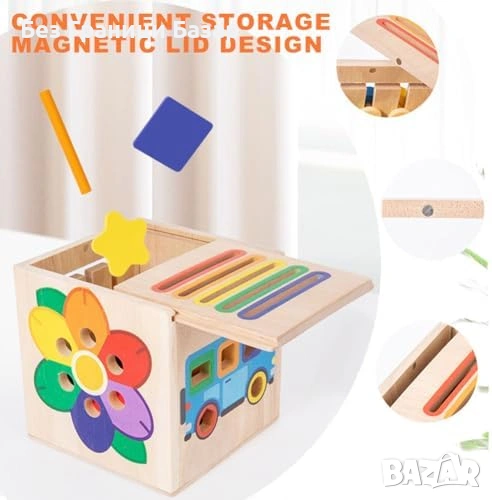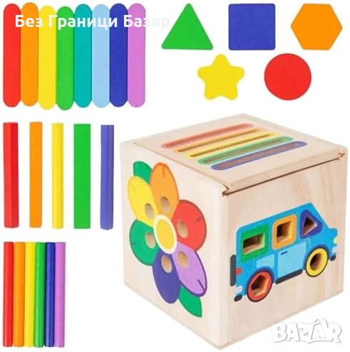 Монтесори дървена играчка за сортиране на цветове и форми
