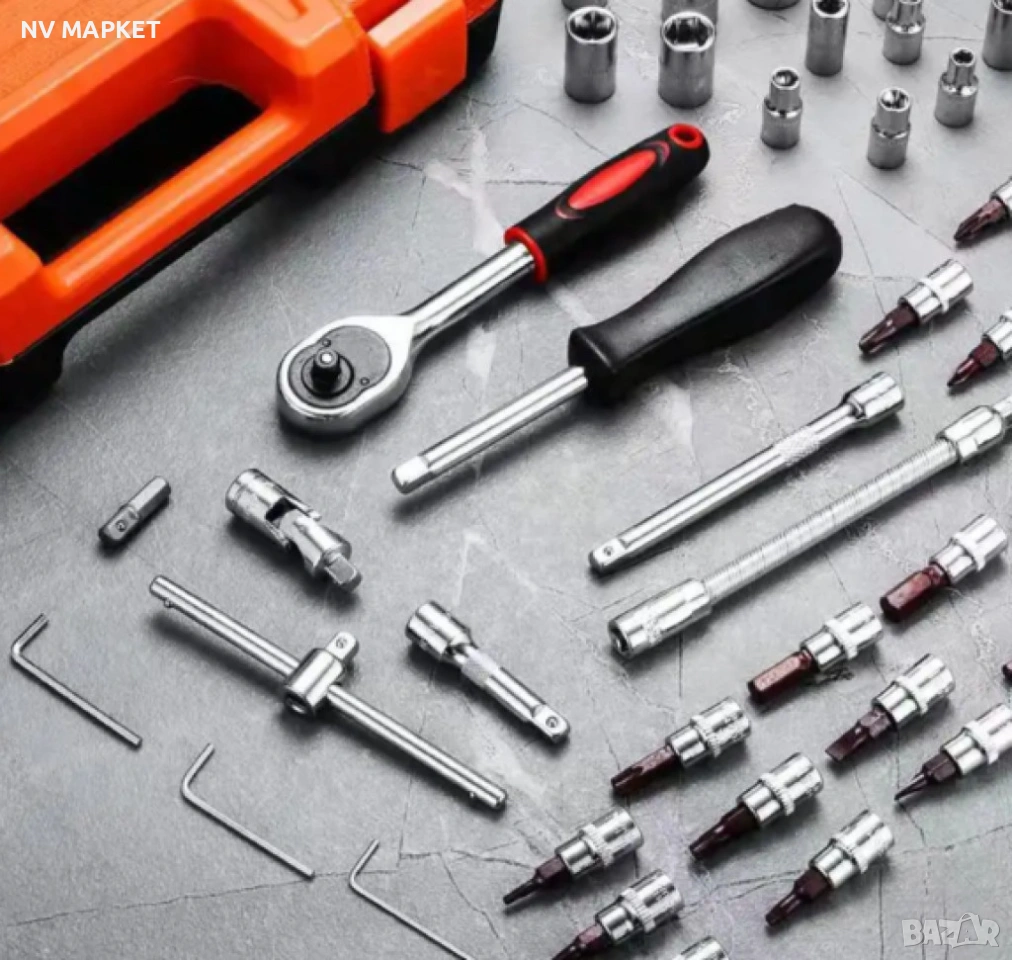 Комплектът съдържа 121 части, включително ключове, накрайници, удължители и отвертки, които са специално подбрани за ремонти на автомобили. Всеки инструмент е предназначен да осигури висока ефективност и удобство при работа с различни автомобилни компоненти.