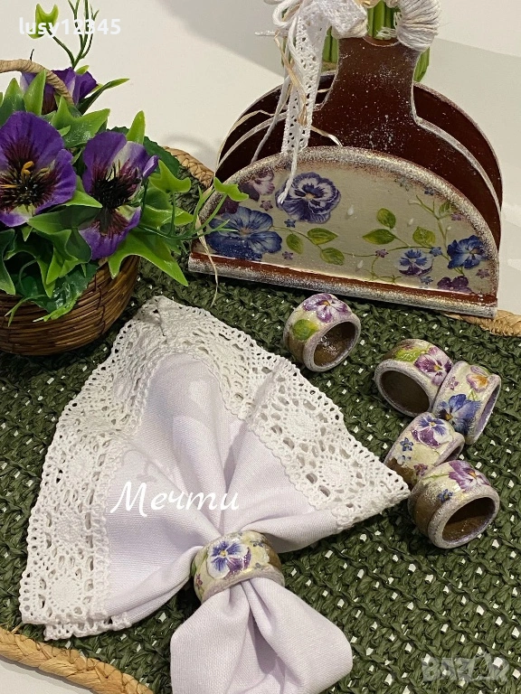 Комплект шест пръстени за салфетки с теменужки! 💜💚💜 → Обява 53843098