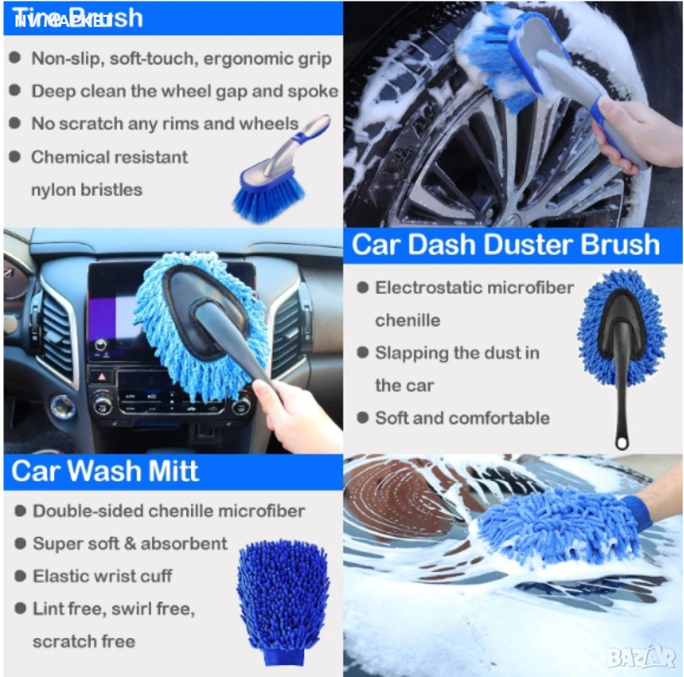 Комплект принадлежности за почистване на автомобил
