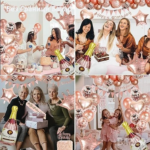 Нов Комплект украса Парти декорация рожден ден розово злато балони и банер