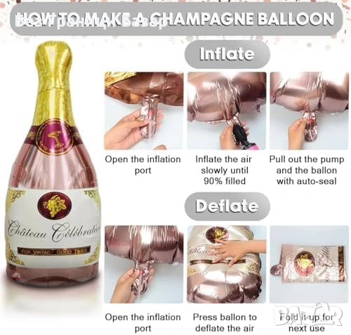 Декоративни фолиеви балони с корона, бутилка шампанско, звезди и сърца