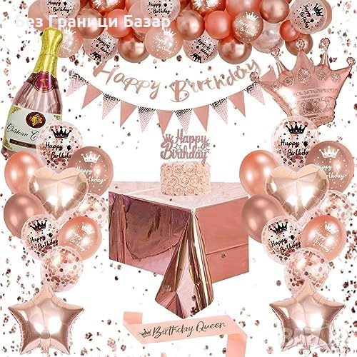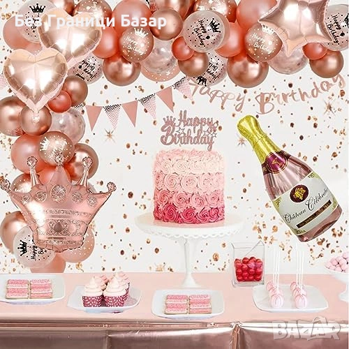 Комплект декорация за рожден ден в елегантен розово-златист цвят