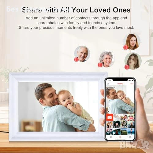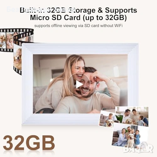 Нова WiFi фото рамка 10.1" Frameo HD IPS тъчскрийн 32GB стенен монтаж