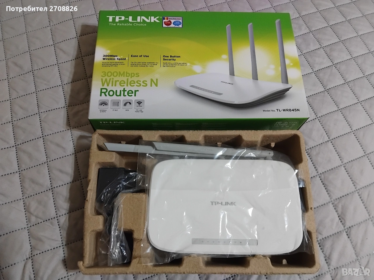 Само за 29 евро ! Много бърз рутер Tp-link с 3 антени, адаптер и кутия