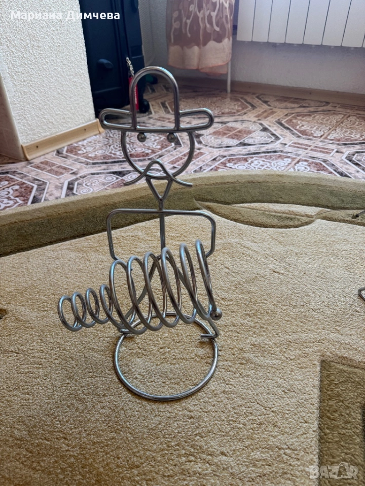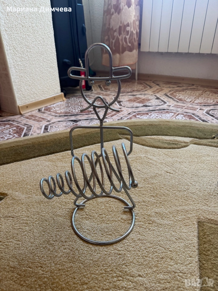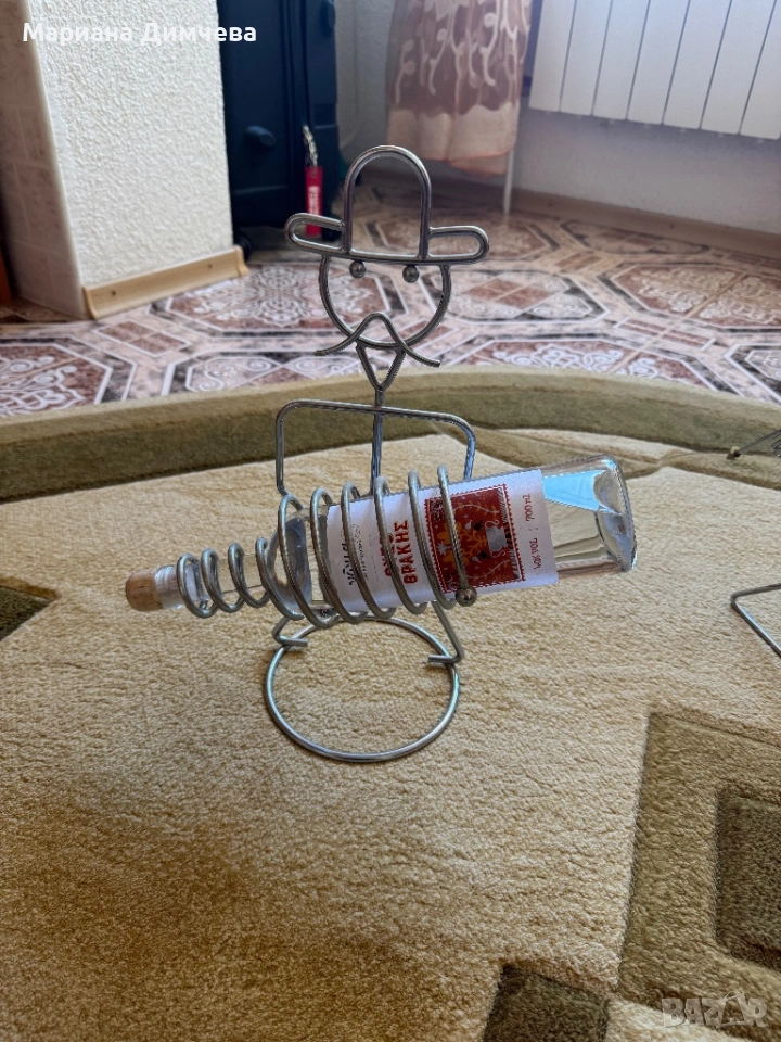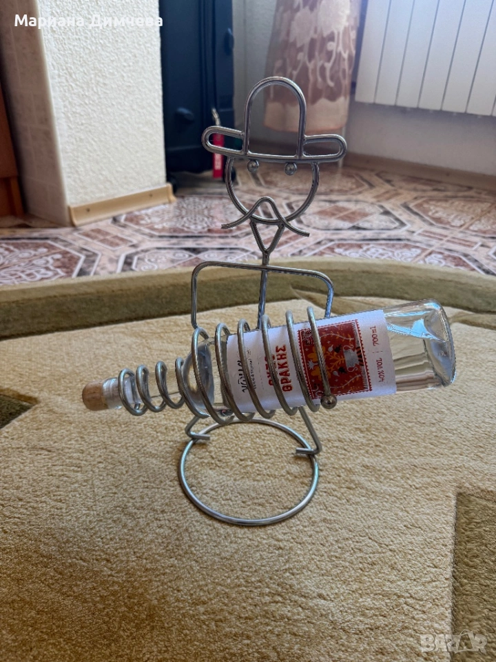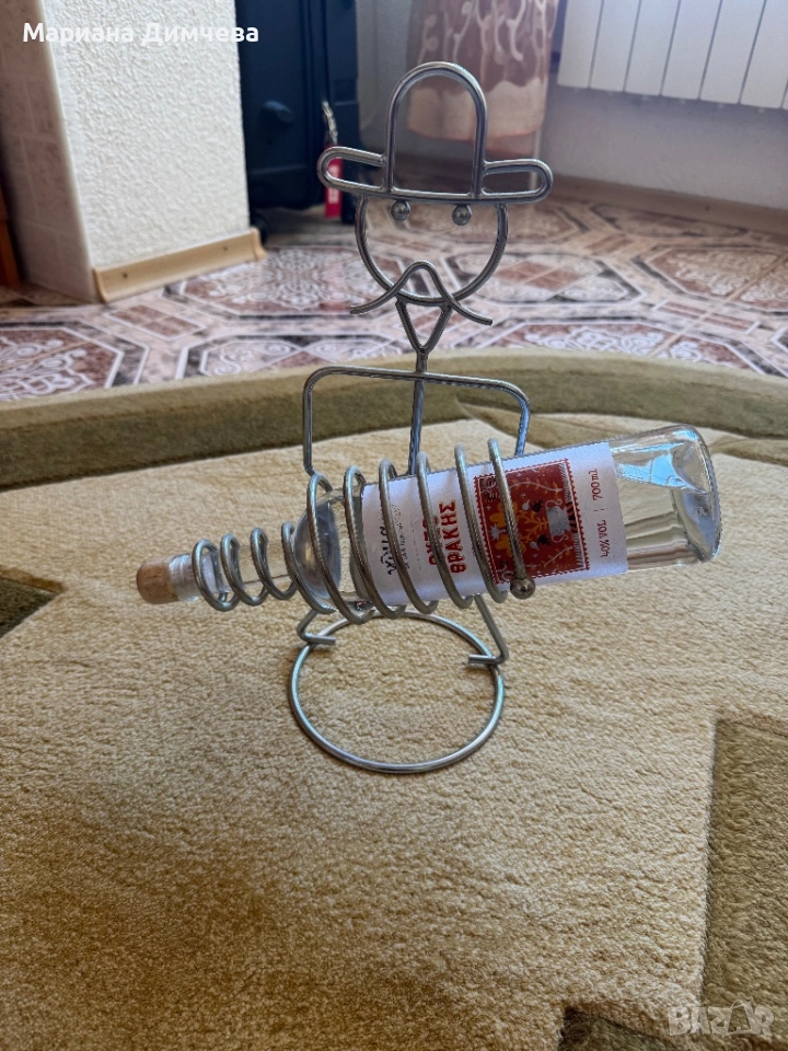 Продавам стилна и оригинална поставка за бутилка вино с модерен дизайн. Изработена е от висококачествена неръждаема никелирана стомана, което я прави здрава, устойчива и много елегантна.