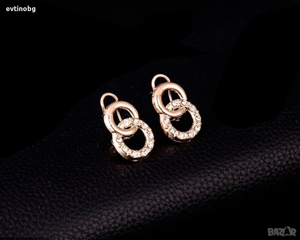 Позлатен комплект бижута от 4 броя части с преплетени рингове → Обява 53843561