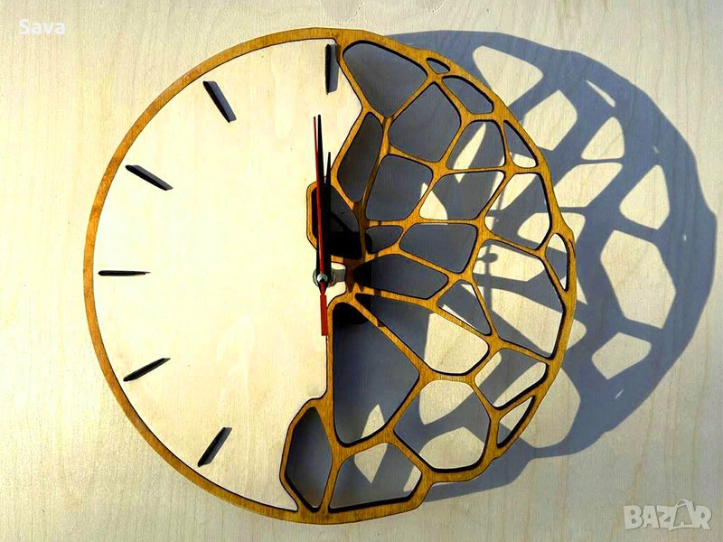 Предлагам стилен декоративен стенен часовник с модерен и артистичен дизайн. Часовникът е с уникална визия – едната половина е класическа и изчистена, а другата е с ефектна геометрична структура, която създава красиви сенки върху стената. Това го превръща не само в часовник, а и в дизайнерски акцент за дома или офиса.